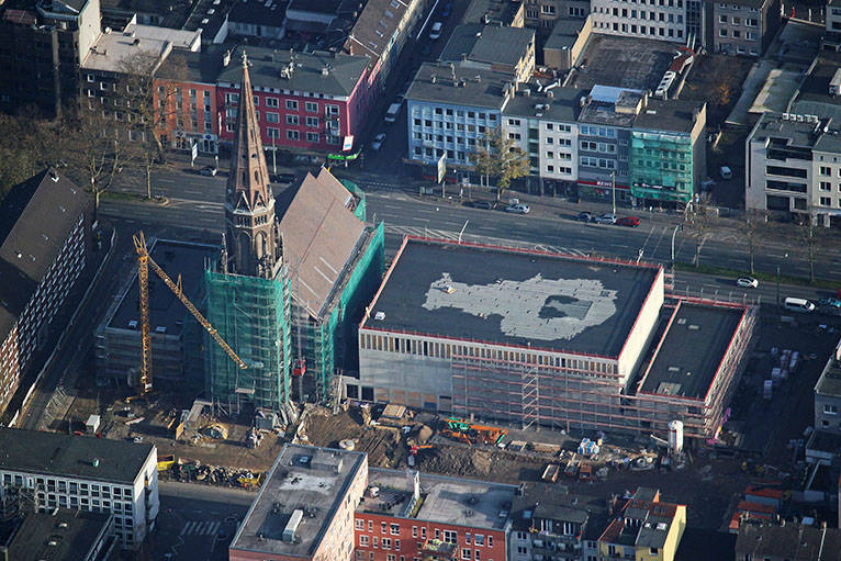 What to do when the sheep in the herd dwindle? The re-use of deconsecrated churches is an urgent problem in the Ruhr Area—and an attractive architectonic challenge. Supported by great civic engagement, the Bochumer Symphoniker will receive a new music center. An integral part of the plan and still under scaffolding: the venerable Church of St. Mary, which was previously already used by the URBANATIX street artists as their training hall. Bez + Kock Architekten plan to complete the center in March 2016. Let’s wait and see if that works out.