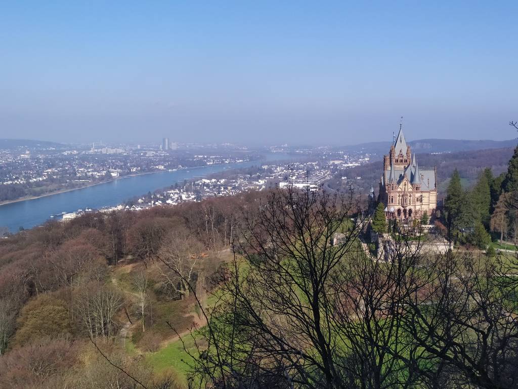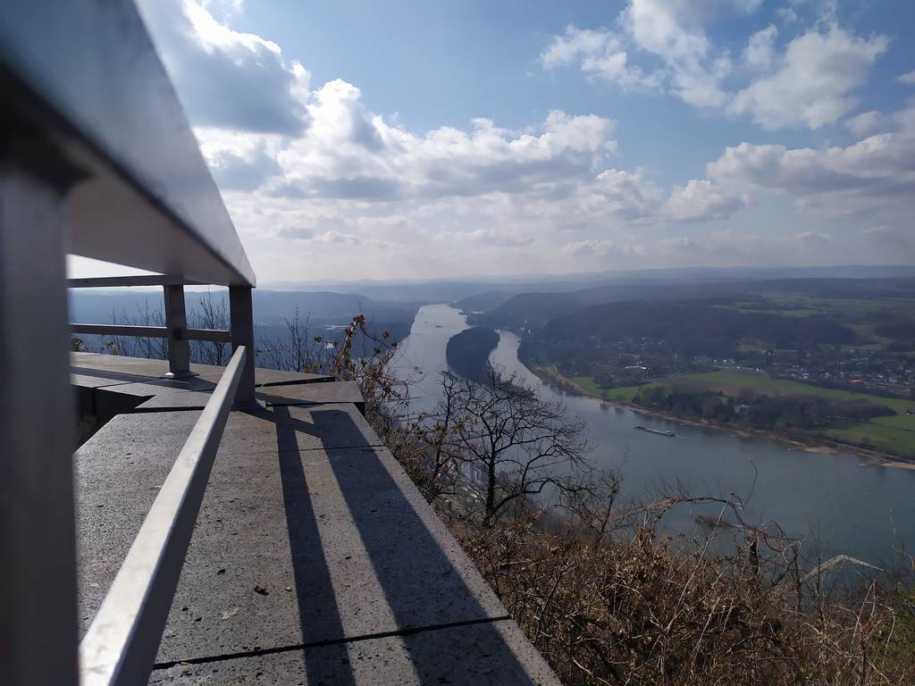 Zu den Höhepunkten der Route gehört der Aussichtspunkt auf dem Gipfel des Drachenfels. Von hier können Ausflügler*innen weit über das Rheintal blicken und die Gedanken schweifen lassen.