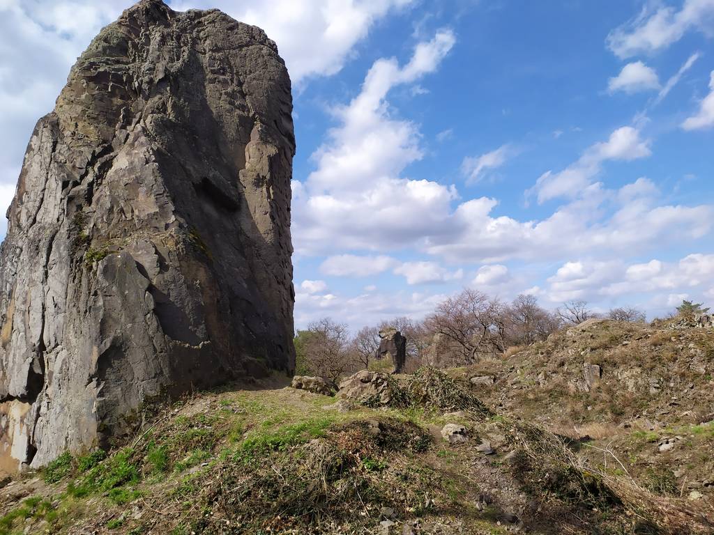 Wer am Stenzelberg noch Puste hat, dem bleibt trotzdem der Mund offen stehen: Riesige Felsformationen erheben sich wie aus dem Nichts in der Landschaft. Große Brocken erscheinen auf kleinen Hügeln vor den Augen.