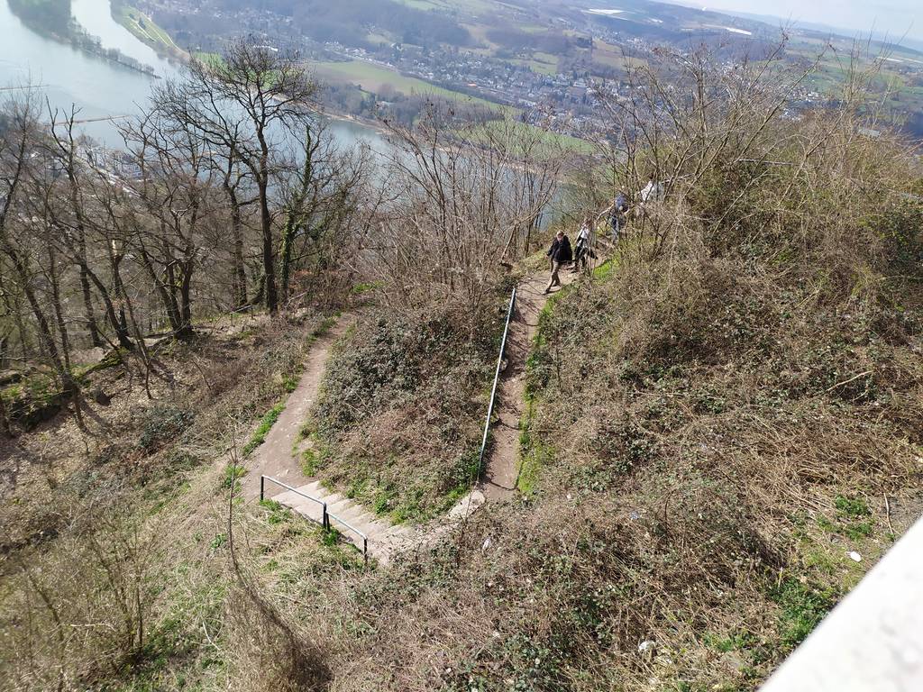 Wer das Kloster Heisterbach hinter sich gelassen hat, kann sich für den letzten Aufstieg wappnen: Steil nach oben führt der Weg zur Spitze des Petersbergs. Wegmarkierungen und -kreuze machen auf den Bittweg aufmerksam. Er ist der letzte erhaltene von ursprünglich fünf Prozessionswegen zur Wallfahrtskapelle auf dem Petersberg.