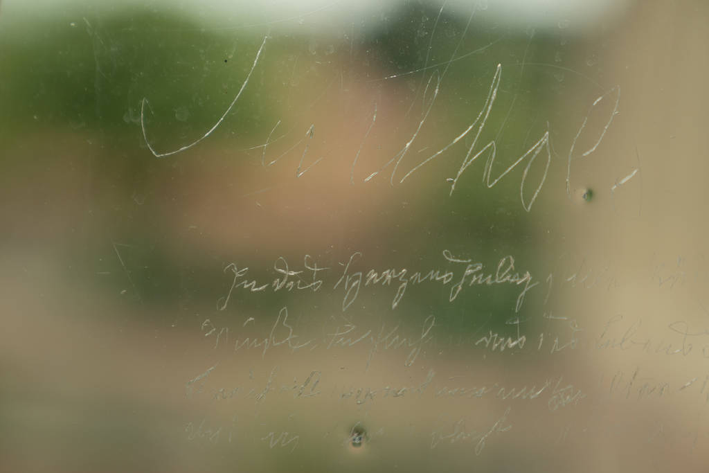 Das Schiller-Zitat, von Annette von Droste zu Hülshoff fein ins Fenster gekritzelt.