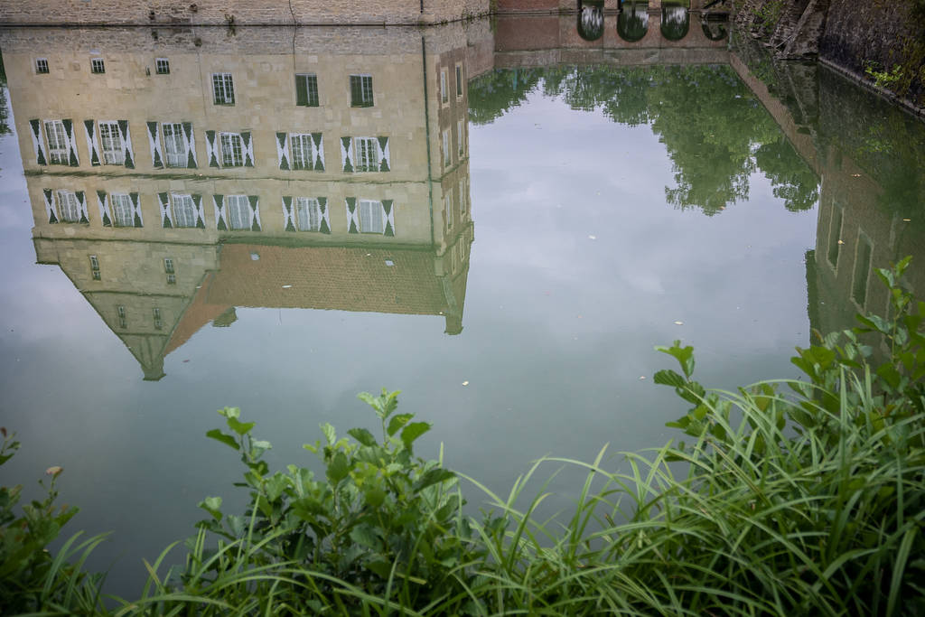 Ein Rasentraktorfahrer stutzt die Wiesen ums Wasserschloss. Einige Radfahrer führt es trotz des Nieselwetters durch den gepflegten Landschaftspark. Angekommen am schmucken Herrenhaus der Renaissanceanlage, erklärt ihnen der Burgherr persönlich dann allerdings, dass Museum und Gastronomie dienstags leider geschlossen hätten. Burgherr trifft es nicht wirklich. Dieser offen-freundliche Mann ist kein Adliger, sondern Gründungsdirektor und künstlerischer Leiter des Center for Literature.