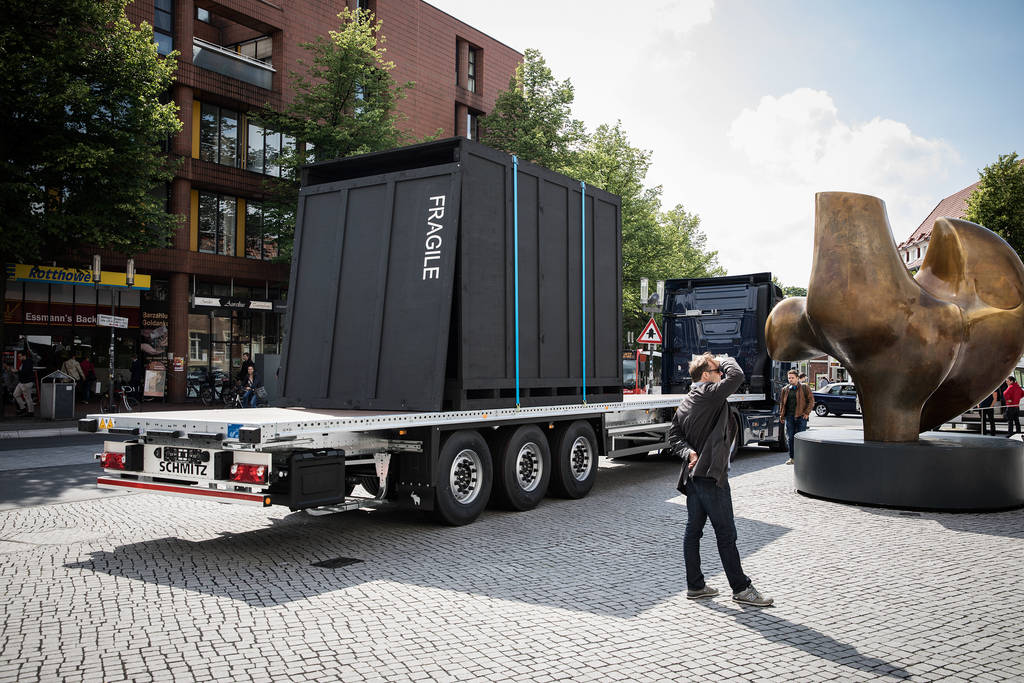Nicht zuletzt geht es den Künstlern um das Hin und Her im globalen Ausstellungsbetrieb. Was die übrigen Projekte jetzt in Münster angeht: Die wenigsten wären geeignet für den herkömmlichen Transport in der Box auf dem Laster.