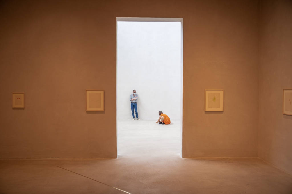 "Licht- und Schattenmuseum" Wenige wohl gewählte Materialien bestimmen auch das Bild im Inneren: Lehmputz gibt den Wänden lichtgraue Farbe. Auf den Böden wechselt glänzender Terrazzo mit stumpfem Mörtelbelag.
