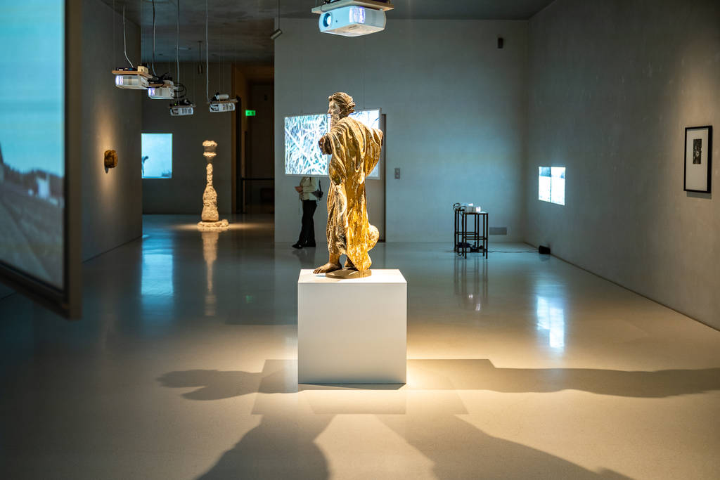 Probieren und kombinieren: Das Miteinander von Altem und Neuem ist Pflicht. Dabei werden immer wieder anregende Dialoge in Gang gebracht. Hier etwa trifft Videokunst auf Schnitzerei des 17. Jahrhunderts.