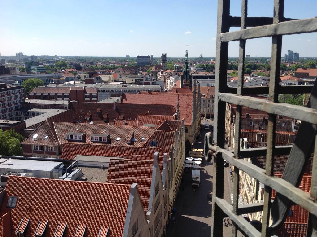 Münster ist übervoll an religiöser Geschichte und zeitgenössischem Glaubensleben, an historischen Auseinandersetzungen wie um das blutig niedergeschlagene Täuferreich, aber auch an aktuellem Kirchen-Zwist – etwa dem Streit um städtische Zuschüsse zur Finanzierung des Katholikentags 2018. Jeden Abend hüllt die Türmerin von der Lamberti-Kirche alle Münsteraner wieder in einen einheitlichen Ton. Aus 75 Metern bläst sie das Horn zu jeder halben Stunde und bei Gefahr von der Lambertikirche – nahende Katastrophen für die lebenswerte Stadt mit der quirligen Studentenszene wurden aber schon lange nicht gesehen.