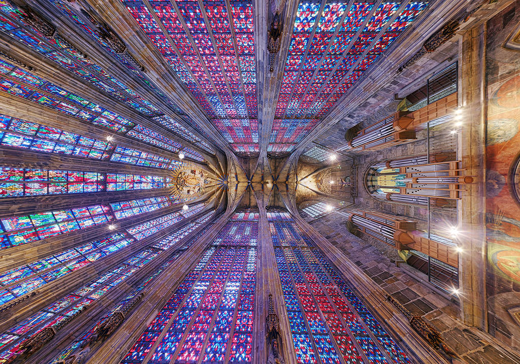 Genau 11.263 Buntglasquadrate im Raster, weitgehend zufällig angeordnet, werfen seit 2007 ihr farbiges Licht in das südliche Querhaus des Kölner Doms. Die Meinungen über das Werk Gerhard Richters gehen auseinander: Ist es in seiner kühnen Abstraktheit ein zeitgemäßer künstlerischer Beitrag zum Gesamtkunstwerk Kölner Dom oder doch Ausdruck einfallsloser Beliebigkeit? Vor Ort verlieren diese Debatten an Relevanz: Der meditativen Stimmung, die die bunten Lichtwechselentfalten, kann man sich nur schwer entziehen.