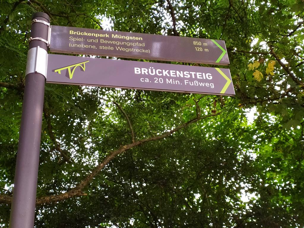 Eine Bahn rauscht über die Gleise. Die Fahrgeräusche verklingen langsam im Wind. Das muss die S7 sein, die mehrere Stationen im Bergischen Städtedreieck ansteuert und am nahegelegenen Bahnhof Solingen-Schaberg hält. Von hier starten viele Abenteurer ihren Ausflug ins Grüne und zur Industriekultur: zur idyllischen Parklandschaft, zum Spiel- und Bewegungspfad und zum Müngstener Brückensteig – dem heutigen Reiseziel.
