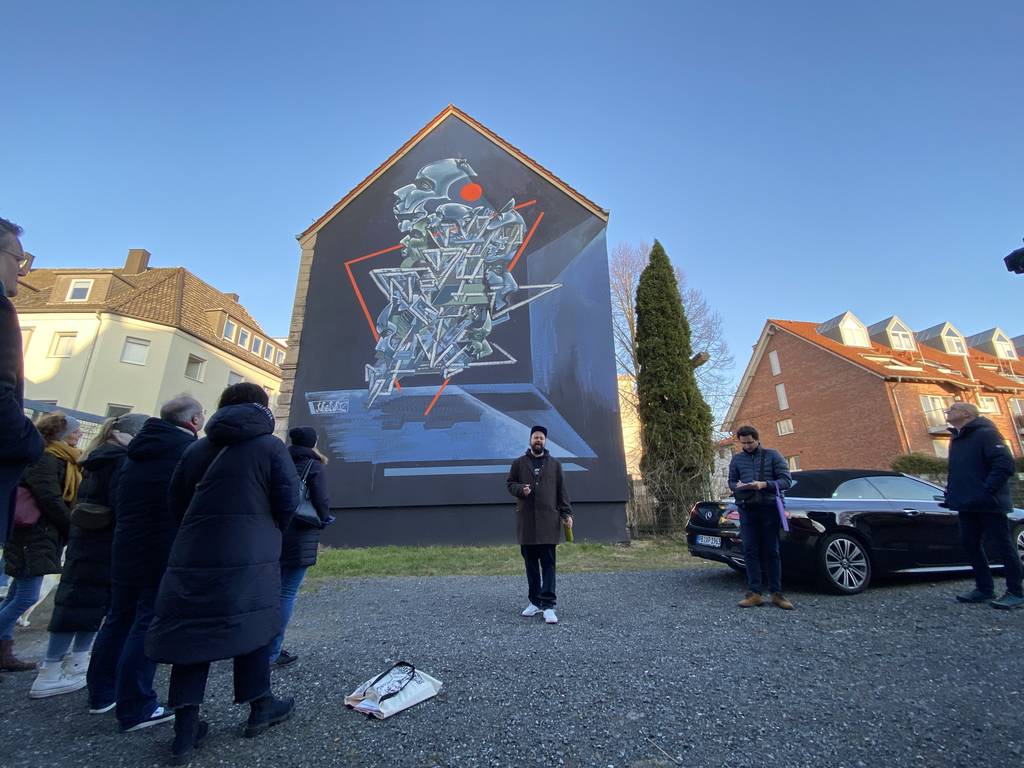 erklärt die Arbeit von Visio Bob aus Münster, der sich die Wand an der Asseburgstraße einteilte.