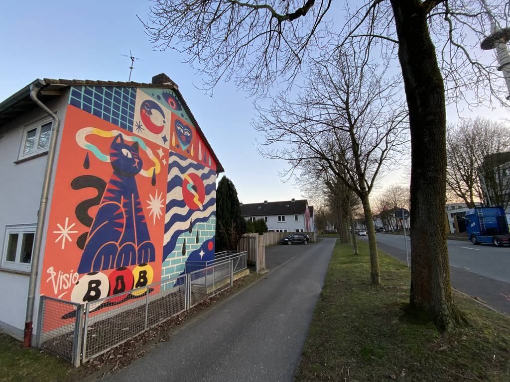Die Dortmunder Künstler Kibe & Bird haben diese Fassade im Riemekeviertel bemalt. Wie sie dabei vorgegangen sind, von der Vorstellung vom Werk, dem ersten Strich bis zum letzten Sprühstoß, erklärt Sven Niemann.