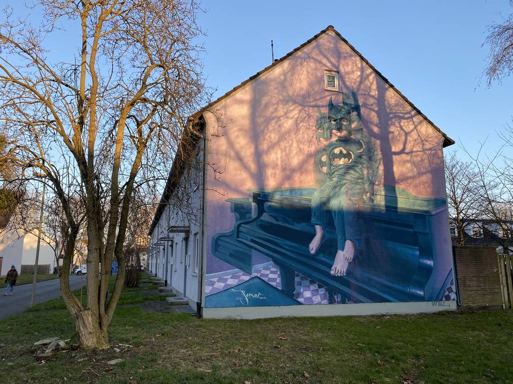Sokar Uno aus Berlin gehört zu den international gefragten Graffiti-Künstlern mit großen Wänden unter anderem in New York, London und Amsterdam. In Paderborn hat er beim Secret City Festival 2021 „Batsilly – Der stille Begleiter“ hinterlassen. Sprühdosen hat er dabei nicht benutzt, sondern zu Pinsel und Rolle gegriffen. Dass heute auch Streamingdienste zahlungskräftige Auftraggeber von Street Art Künstlern sind, und wie das auf die Szene wirkt, darüber ist auf dem Rundgang mehr zu erfahren.