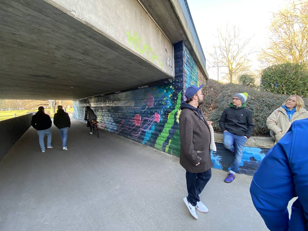 Was macht ein Sprayer oder eine Sprayerin, wenn die Wand zu groß ist für das Vorhaben? Tourguide Sven Niemann weiß die Antwort und