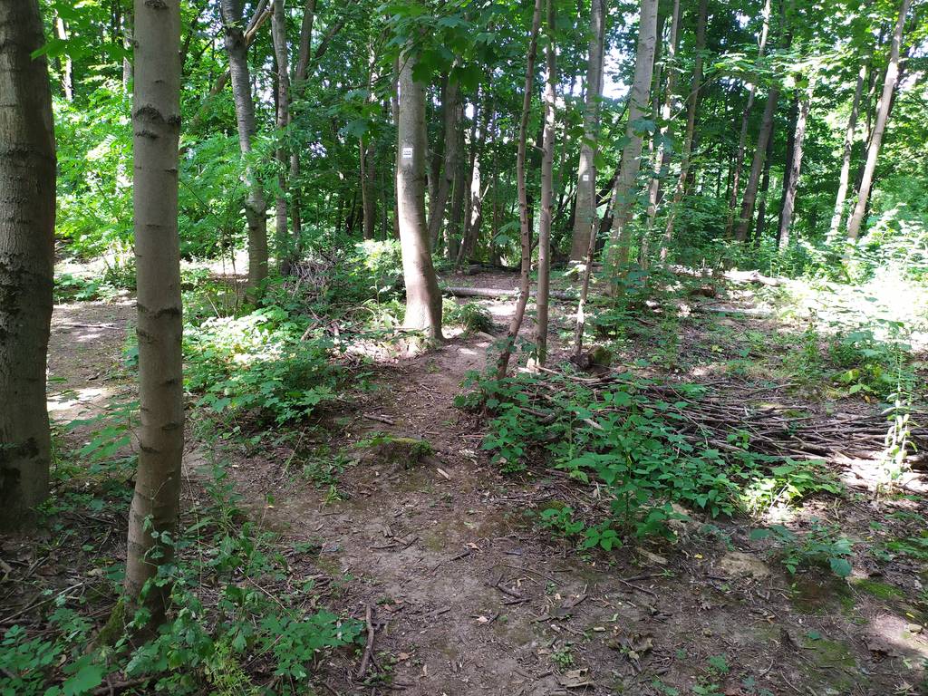 Ein serpentinenartiger Schotterweg führt hinab. Die Gedanken kreisen, während die Füße sich durch den Haldenwald bewegen.